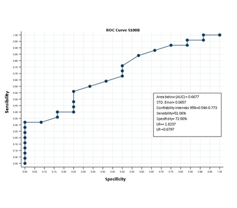 Conclusion: Although we do not know the true clinical significance and the specific anatomical substrate that induces the release of the S100β it can be considered as a biomarker of brain damage, only if complemented with other parameters such as lactate and total antioxidant capacity.