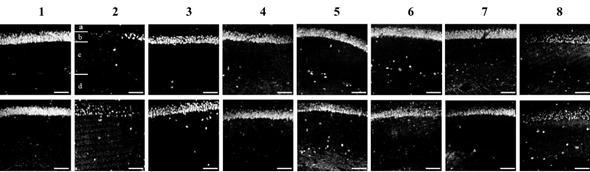 Figure 3 Confocal photomicrographs of frontal CA1 sections of the hippocampus zone, stained with the neuron marker NeuN.