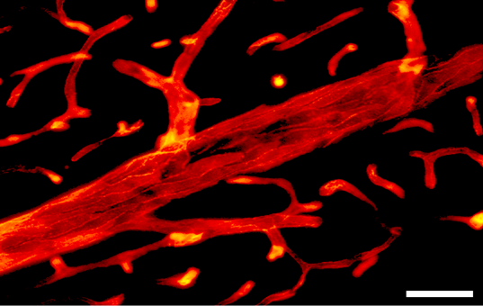 Figure 5 Photomicrograph of RECA-1-positive vessels in the CA1 zone of the hippocampus. Scale bar=50µm.