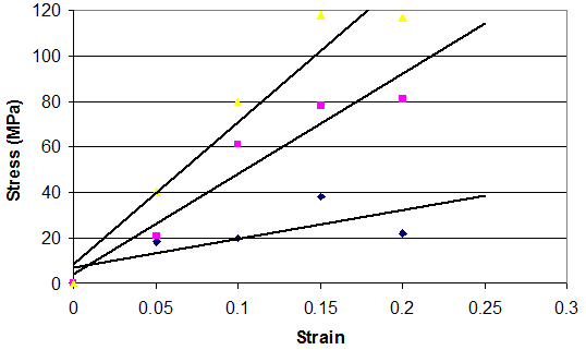 The time-dependent behavior of collagenous materials makes it difficult to interpret stress-strain relationships for these tissues. However using incremental stress-strain curves, the elastic and viscous behaviors can be separated and analyzed in terms of tissue structure.11 The viscoelastic properties of ECMs have been obtained by constructing incremental stress-strain curves for a variety of tissues including tendon2,11 (Figure 3). Such incremental stress-strain curves are derived for tendon and other ECMs by stretching the tissue in a series of strain increments and then allowing the stress to relax to an equilibrium value at each strain increment before another strain increment is added (Figure 3 top).11 By subtracting the elastic stress (equilibrium stress value) from the initial or total stress value, the viscous stress is obtained. By plotting the equilibrium stress versus strain and the total stress minus the equilibrium stress versus strain (Figure 3bottom) we get elastic and viscous stress-strain curves for tendon.2 (Figure 3). From these curves and the literature, important information can be obtained concerning the mechanism of stretching and sliding of the collagen molecules and fibrils that make up the structure of tendon fibers.2 Note in the absence of the crimp the relationship between elastic stress and strain is approximately linear (Figure 4). It turns out that the slope of the elastic stress-strain curve is proportional to the elastic modulus of the collagen molecule,2,19 while the viscous stress at a particular strain is a measure of the fibril length.2,19 The problem with conducting true incremental stress-strain testing on collagenous materials is that it takes up to 24 hours for the stress to relax to an equilibrium value, before another strain increment can be added. However, the value of doing such an experiment is that it has been reported that the elastic modulus is strain-rate independent for a variety of collagenous tissues and self-assembled collagen fibers.2 However, construction of an incremental stress-strain curve is a very tedious task and other methods need to be developed to obtain the elastic modulus for collagenous materials both in vitro and in vivo.