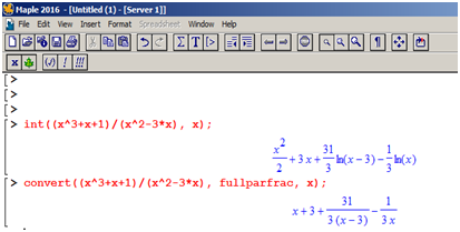 Example 4: A tedious integration by partial fractions. For instance, the CAS Maple can compute and justify the result of (Figure 10).