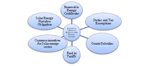 Presently a day's sun oriented energy structure is the new patterns of age of power as non-ordinary energy framework. This article presents part of sun based energy framework in clean advancement component and improvement of keen city in India. It is a charming spot for creates power by sun based energy framework since India is thickly populated and has high sunlight based radiation. India's hypothetical sun based power gathering, on just its territory range is around 5000(PWh/year).The everyday normal sun oriented radiation occurrence over India shifts from 4 to 7KWh/m2 with around 1500-2000 sun sparkle hours for each year. In year 2009, India talks to a 19 billion US dollar intend to deliver 20 GW of sun oriented power by 2020.The measure of sun based energy created in India in 2007 was under 1% of the aggregate energy request. The lattice intelligent sunlight based power as of December 2010 was only 10MW. Government subsidized solar energy in India represented roughly 6.4 MW/Year of energy starting at 2005, 25.1 MW was included 2010 and 468MW of every 2011. By July 2012 the introduced framework associated PV had expanded to 1040.67MW and India hopes to introduce an extra 10,000MW by 2017 and an aggregate of 20,000MW by 2022.