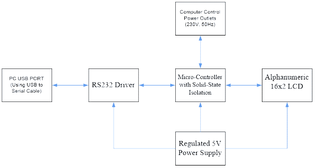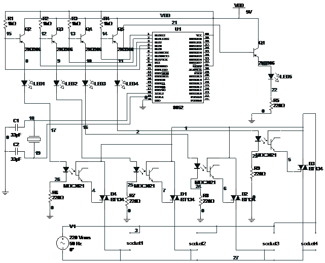Schematic diagram that shows the result of the integration of Microcontroller and LCD with the regulated power as well as the connections to the four power outlets to be controlled (Figure 6). The user interface through which the various components of the distribution outlet system could be easily used (Figure 7).