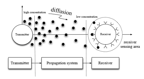 Figure 5 Diffusion-based molecular channel model.