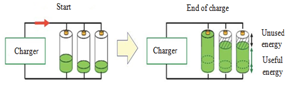 Figure 1 Effect of charging and discharging coupled batteries with different characteristics.3