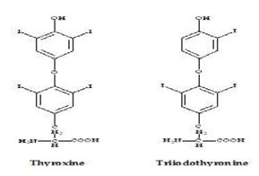 The thyroid gland is an endocrine gland first described by Thomas Wharton [1616-1673] of England. The word thyroid is derived from Greek words (“thyreos”-sheid, plus “eidos”-form). It weighs normally between 12-20gms. It has two lobes that are connected by an isthmus. It is wrapped around the trachea as though it is a shield for the trachea. It is highly vascular, and soft in consistency. Enlargement of thyroid gland is called goiter. Toxic goiter secretes excess thyroid hormones. Non- toxic goiter secretes normal or even subnormal levels of hormones.13,14 The thyroid gland develops from the floor of primitive pharynx during third week of gestation. The gland migrates from the foramen cecum, at the base of the tongue, along the thyroglossal duct to reach its final location in the neck. This feature accounts for the rare ectopic location of thyroid tissue at the base of the tongue (lingual thyroid), as well as for the presence of thyroglossal duct cysts along the developmental tract.13 Thyroid gland development is controlled by coordinated action of developmental transcription factors. Thyroid transcription factor (TTF-1) also known as NKX2A, TTF-2(also known as FKHL15), and paired homeobox (PAX-8) are expressed electively, but not exclusively, in the thyroid gland. In combination, they dictate thyroid cell development and induction of thyroid specific genes such asthyroglobulin (Tg), thyroid peroxidase (TPO), the sodium iodide symporter (NIS) and the thyroid stimulating hormone receptor (TSH-R).13 Mutation in these developmental transcription factors or their downstream target genes are rare causes of thyroid agenesis or dyshormonogenesis and cause congenital hypothyroidism.13