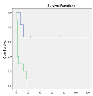 Statistical analysis was performed with SPSS® version 21 for Windows®. Results are presented in means ± standard deviations and frequencies. Statistical significance was considered for a p value <0.05. Student t-test was used for comparison of continuous variables and to analyse survival we used Kaplan-Meier method. The hospital ethics committee approved the study.