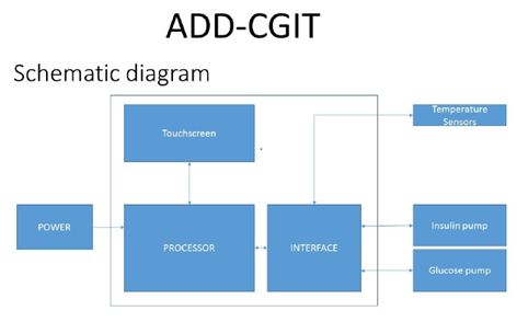 Figure 1 Schema of the used device (Apparatus for Diabetes Diagnosis and CGT Complex for Insulin and Glucose Therapy). The device was used only in observation regiment (ADD).