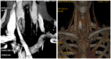 Result: 27 year old female presented with nausea, vomiting and abdominal pain. A serum calcium level of 15.8 mg/dl with PTH of 413 was noted on admission. She was initially treated with IV hydration and had ultrasound of neck which showed 2.8 cm complex nodule in right thyroid lobe. After appropriate work up, she underwent a surgical resection of parathyroid adenoma found on CT with 3D reconstruction. Pathology showed a mixed picture more consistent with possible atypical adenoma.
