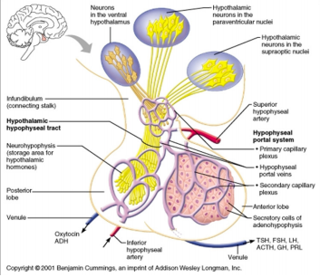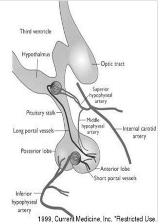 - Pituitary Gland normally derives blood supply from vessels passing through the hypothalamus, anterior pituitary derives 70-90 of its blood supply from portal system.