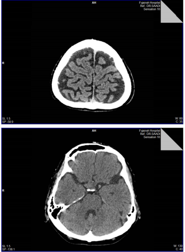 - Normal brain parenchyma and ventricular system, normal cerebral sulci and basal cistern…