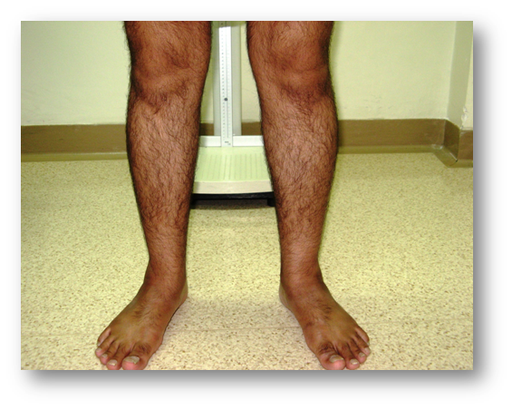 - Looks underweight, mild bossing of forehead, knocked knee, bowed legs, chest no skeletal deformity!