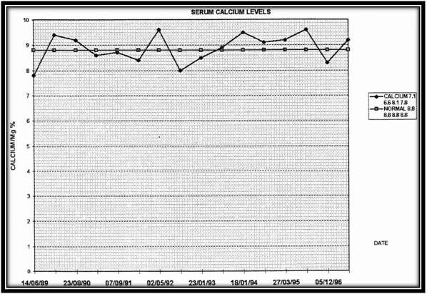 - Vit. D given: Ca 2.11mmol/L (2.10-2.55), Jan.05.10