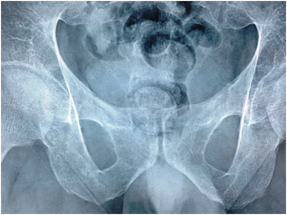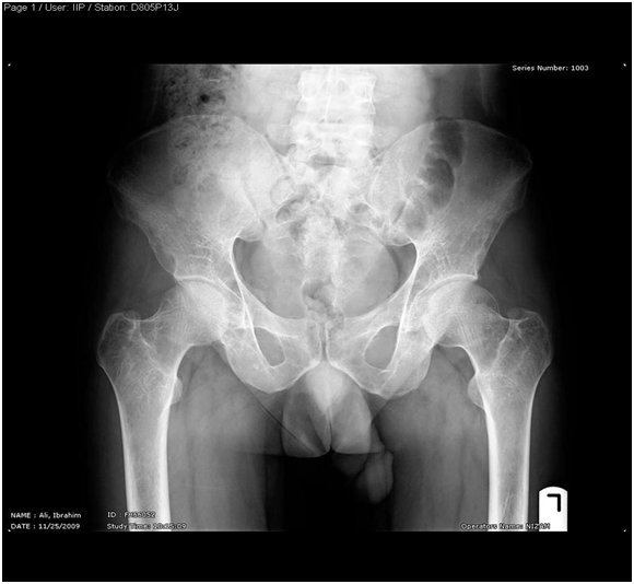- Pelvis & both Femori: there is thickening of secondary bone trabeculae ,in the neck and metaphysis of both femori indicating osteopenia