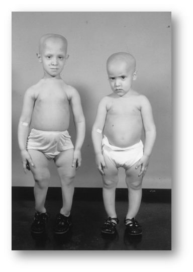 Children with HVDRR and alopecia [Reprinted with permission from J. F. Rosen et al.: J Pediatr 94:729–735, 1979VITAMIN D RECEPTOR AND HVDRR; Endocrine Reviews 20(2):156–188.