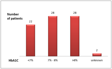The mean of HBA1c was 7.97 % (SD +/- 1.392): HbA1c distribution of patients is shown in Figure 3.