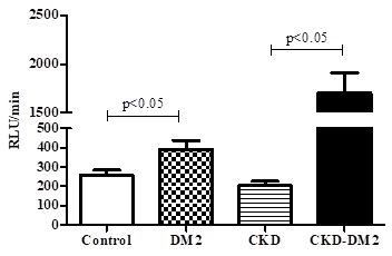 RLU/min, relative light unit/minute; DM2, type 2 diabetes mellitus; CKD, chronic kidney disease; CKD-DM2, chronic kidney disease with Type 2 diabetes mellitus patients.