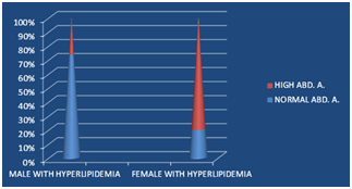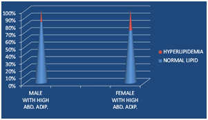 Conclusion: In both gender minority number of those with high abdominal adiposity have hyperlipidaemia though with female having sizable minority number. Conversely a marked disparity is seen among female subjects with hyperlipidemia.