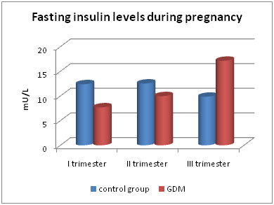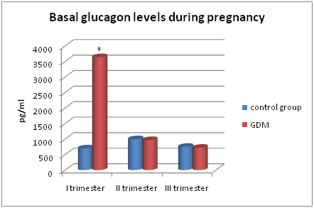 A recent report (Grigorakis SI, 2000) showed that women with GDM had higher glucagon levels compared to non-diabetic group.5 A research held in 2005 (Beis C) demonstrated the same results: basal glucagonemia was grater in GDM-group of patients, than in the control group (healthy pregnant women, matched to the main group by age and BMI).6