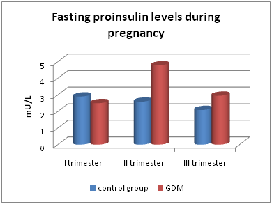 Those women, who were diagnosed GDM in the second trimester, had increased fasting proinsulin secretion compared to non-diabetic patients, though the data were not significant.