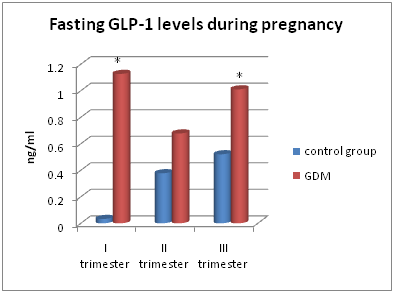Those patients, who developed GDM in the first trimester and had fasting and postprandial hyperglucagonemia, also tended to have significantly greater basal GLP-1 concentrations.