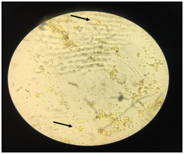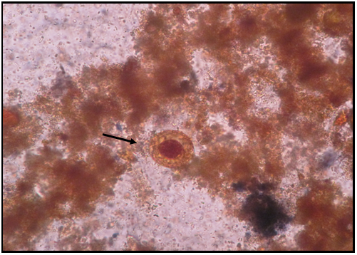Full history, general examination, random blood sugar test (RBS), Hb and hemoglobin A1c levels were performed for each participant.16 Also demographic data and risk factors for parasitic infections were filled for all participants. Stools samples were obtained from children after the full explanation of the process to them. Fresh faecal samples were collected in dry labeled, plastic containers, with tight fitting covers and they were taken with caution not to be contaminated with urine.5 The samples were transported immediately to the Department of Parasitology zagazig university, where lab assessments were done. Stools samples were examined by direct wet17 and iodine stained smears18 and formol-ether concentration method for the routine screening of ova and parasites diagnostic stages (Figures 1‒10 ).19 Each sample was examined separately. Smears were prepared from sediments of formol-ether concentration for modified ziehl neelsen staining to detect intestinal coccidian and Cryptosporidium spp.19 Slides were examined by light microscopy at ×100, ×400 and ×1000 magnifications. Stools culture on nutrient agar was also done for detection of some intestinal parasites diagnostic stages.20 Patients with T1DM were divided according to the presence or absence of intestinal parasitic diagnostic stages in their stools into two main groups