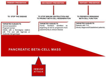 The main stages in the development of type 1 diabetes and prevention approaches are summarized in Figure 1.