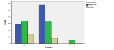 One peculiar finding is that none of the patients who are not being treated for glycaemia say that he/she is not aware of family history, and twice the population respond in negative!