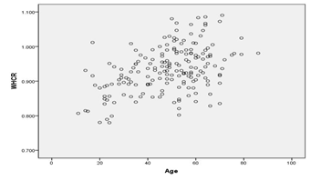 Note that the situation of WHRC vs Age is similar to BMI vs Age. Hence we do not produce any more tables and charts.