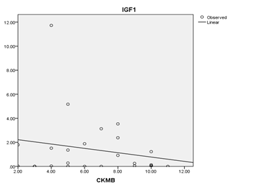 Results: High percentage of smoking (60%), family history of cardiovascular diseases (62%) and high percentage of physical inactivity activity (70%) was found out in IHD group. Total Cholesterol, CK-MB and IGF-1 were significantly higher in IHD group as compared with the control group. The relationship of IGF-1 with TG and CK-MB was direct though non-significant.