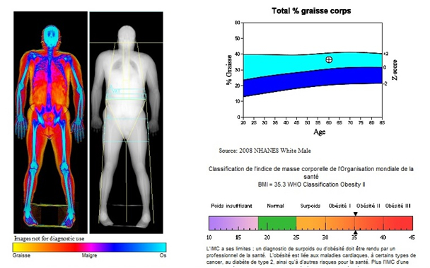 DXA relies on the fact that an X-ray beam passing through a complex substance (e.g. the body) is attenuated to a different extent by the different substances it passes through.29,30 Using a dual beam with different X-ray images the machine is able to partition the body into two compartments on a pixel-by-pixel basis. Dense pixels corresponding to the bone are separated from less dense soft-tissue pixels (Figure 3). The soft-tissue compartment is then analysed to separate fat mass from lean body mass (LBM),31 DXA has emerged as the most clinically useful technique for measuring bone and soft-tissue mass.32 This method has also not been independently validated.33