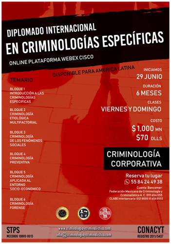 This paper it's Focuses on highlighting the Importance of the criminology in Mexico specializing. It is taken as a reference to the specifics criminologies that have been developed in USA, Europe and other regions, Compared to those developed in the Mexican and Latinamerican bibliography. The objective is to highlight the need to create Importance and terms and conceptualize areas of specialized studies in criminology. So that, Have the professionals better tools of knowledge and make progress in the intervention With the phenomena of the criminality. Given the great contrast exists in Mexico that on the theoretical evolution of criminology With Other Countries of North America, Europe and Asia.