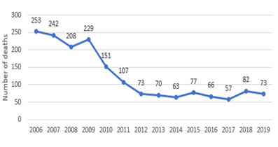 Figure 2 Number of drug overdose deaths in Greece from 2006 to 2019.26