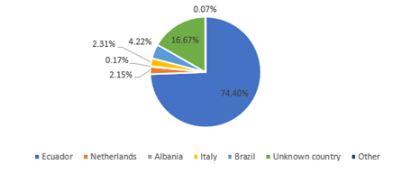 The percentage of confiscated cocaine found to be coming directly from Latin American totaled at 78.62% (Figure 5).