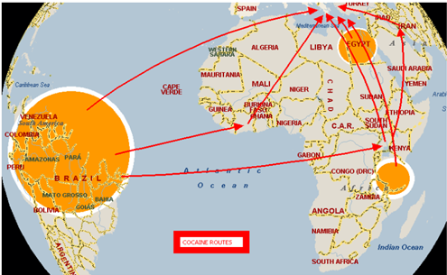 Trafficking patterns into the European Union generally, and in Greece particularly, could be completely understood when a larger context on the overall pathways of the marine commerce and the traveling patterns across Atlantic are obtained. Cocaine is mainly imported into Europe through marine channels, as opposed to heroin, that is typically carried by terrestrial routes. The strategic implementation implies that cocaine trafficking is inextricably linked to marine trade and tourism.32