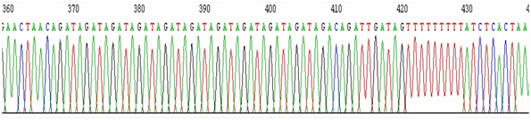10.1:GGGGCTAACGCAGTGCAGCTTGCATGCCTGCAGGTCGACGATTGACCCCCTATGGAATTTTTTTGTTTGTTTGTTTTTATTTATTTCTTTATCTTGAGATGGAGTCTCACTCTGTCACCCAGGCTGGAGTGCAGTGGTGCGATCTCGGCTCACTGCAACCTCCGCTTCTTGGGTCAAGTGGTTCTCCTGCCCCAGCCTCCTGAGTAGCTGGGACTACAGGCATGTGCTACTGCATCCAGCTAATTTTTGTATTTTTTTTAGAGACGGGGTTTCACCATGTTGGTCAGGCTGACTATGGAGTTATTTTAAGGTTAATATATATAAAGGGTATGATAGAACACTTGTCATAGTTTAGAACGAACTAACA(GATA)10GACAGATTGATAG(T)9ATCTCACTAAATAGTCTATAGTAAACATTTAATTACCAATATGTGGTGCAATTCTGTCAATGAGGATAAATGTGGAATCGTTATAATTCTTAAAAATATATATTCCCTCTGAGTTTTTGATACCTCAGATTTTAAGACCTCACAATTATCTCACAAGGCTTAAAATCAATCATATTTTGAGGATCACCTTATGGTATTTTTGCCTGTTTTTATTCCTTCTGGTGTGAAAACTGATGCCTTCCATCGTGTAACTCTTGTTCACACTGGTTTCAGTATTTTGTTTTGAATCTCTAGAGGATCCCCGGGTACCGAGCTCGAATTCGTAATCATGGTCATAGCTGTTTCCTGTGTGAAATTGTTATCCGCTCACAATTCCACACAACATACGAGCCGGAAGCATAAAGTGTAAAGCCTGGGGTGCCTAATGAGTGAGCTAACTCACATTAATTGCGTTGCGCTCACTGCCCGCTTTCCAGTCGGGAAACCTGTCGTGCCAGCTGCATTAATGAATCGGCCAACGCGCGGGGAGAGGCGGTTTGCGTATTGGGCGCTCTTCCGCTTCCTCGCTCAC