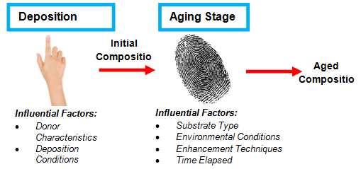 Figure 2 A graphic representation of how finger-mark composition alters over time from the initial to aged composition whilst being influenced by various factors.5
