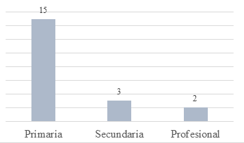 The selected variables consisted of determining the education, age, social stratum, medical diagnosis of the Holder of the Legal Act (TAJ), reason for the support agreement, and kinship relationship or affinity with the Support Person (PA). These variables are related to each other in terms of the protection needs of the intellectually and psychosocially disabled population. For example, Figure 1 indicates that 3/4 of the cases of formalization of support agreements advanced in that notary office correspond to PwD who have reached primary school at most. Only two people are high school graduates and the same number are professionals. This indicates that the need to carry out legal acts for PwD is found in a population with little education.