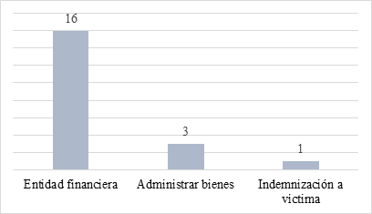 Interview with Legal Act Holders and Support Persons. Regarding practical advances, both the holders of the legal act and the people they support were asked what the objective was of appearing at a notary's office for this procedure. Some responded that they needed to manage or transfer some property, another said that they were going to carry out a compensation procedure as a victim in a particular situation that arose; Others expressed that their interest was to go to a banking entity to pay their retirement pension payments and manage their debit card, and still others said that they needed to process their pension with their respective entity. The latter correspond to the 16 people in Figure 6, relative to the variable “Financial entity”. The people who expressed their need to go to a banking or pension entity for the processing of their interest were asked the reason why they were not assisted, to which they said that there they were required to present a deed or a document record of formalization of support agreement in a notary or conciliation center, or a support award before a judge. This is then the reason why their request was processed at the notary.