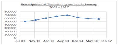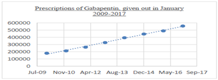 The current law relating to prescription drugs is unclear and appears to be open to interpretation. There is no one Act that controls all prescription drugs, which could be part of the reason it is difficult to understand the legal position in relation to prescription drugs. The main body of legislation within the UK which governs the use of drugs, is the Misuse of Drugs Act 1971. This Act however, only regulates controlled drugs, meaning many prescription drugs are not covered by it. There is some crossover in which drugs are both controlled and prescription drugs, for example diamorphine is a Class A drug, codeine is a Class B drug, and diazepam is a Class C drug. If a person is found to be illegally in possession of these controlled drugs they can be subject to a heavy prison sentence. The sentence for supply, or intent to supply is even larger, as demonstrated in table 5. All of the above sentences can be replaced with/or accompanied by a fine.37 Whilst this act regulates a number of prescription drugs, there appears to be a gap in the law, where drugs such as gabapentin and pregabalin are concerned, as they are not listed in Schedule II of the Misuse of Drugs Act, or obviously controlled by any other legislation. This means whilst they can only be obtained by consult for the use by an individual named on the prescription there is no obvious legislation to prevent the sharing of these drugs with other people which would lead to a prosecution. It is arguable that a person could be prosecuted under Section 23 of the Offences Against the Person Act 1861,38 though this does say that administration of the substance has to be unlawful and malicious. This raises the question of whether it is unlawful to give prescribed drugs to another person, and if there was any intent to cause them harm by doing so. Whilst conducting the research for this paper, it has not been possible to find any definitive legislation referring specifically to the illegality of sharing of prescription drugs which are not classified as controlled drugs, however it is illegal to sell medication without a valid license. The sharing of non-controlled prescription drugs, would appear to be more of a question of morality than legality. From June 10th 2014, tramadol was made a class C drug, under the Misuse of Drugs Act 1971, due to the increased number of deaths related to the drug.39 Data has been extracted from the Prescription Cost Analysis published by the NHS40 to show the number of prescriptions given out each January of every year between 2009 and 2017 for three drugs: tramadol, pregabalin, and gabapentin. This information is displayed in Graphs 3‒5. It can be seen from Graph 3 that between 2009 and 2014, there was a steady increase in the rise of prescriptions given out, which peaked at 692,321 scripts for the January of 2014. From 2014 (the year tramadol became a controlled drug) to 2017, there has been a fall in the number of prescription drugs given out each year. Tramadol can only be prescribed for twenty-eight days and can no longer be prescribed as part of the NHS repeat dispensing scheme. The above data suggests that in making tramadol a controlled drug, general practitioners have become more reluctant to prescribe it so readily, which is likely a contributing factor to the decrease in tramadol related deaths.41 Graphs 4 & 5 show that there has been a steady increase year on year of prescriptions of these drugs being provided. Since 2009, there has been a 419% increase in prescriptions of pregabalin, and a 309% increase in the prescriptions of gabapentin. It can be estimated, that if prescribing continues to rise at the same rate as over the last three years; then by January 2019, prescriptions of gabapentin will have overtaken tramadol at its highest rate, and by January 2020, pregabalin will have done the same. It is therefore inevitable that before long, pregabalin and gabapentin will appear on more and more death certificates until an intervening factor is introduced, such as making the drugs controlled substances (Graph 3-5).