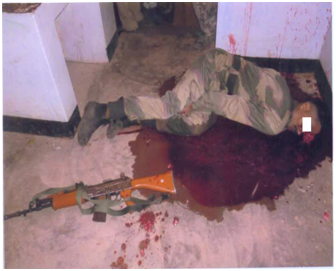 On the basis of wound ballistics study and crime spot analysis, the entry wound on the forehead and exit wound in the occipital bone on the back side of the deceased have been established. The recovered fired cartridge case was fired from the service firearm used by the security personal. The analysis of viscera ruled out the possibility of poisoning and confirmed the death due to firearm injury.