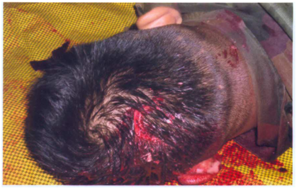 One rifleman working in battalion was assigned with sentry duty and all of a sudden firing sound was heard. On verification, it was found that the rifleman on sentry duty had committed suicide with his service firearm having bullet wounds one on the back side situated in occipital bone, 8 cm above cervical vertebra and the other wound over his forehead. The case was investigated and different physical evidence were collected to reconstruct the crime followed with autopsy study of the deceased.