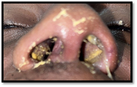 Presence of suspicious substance in the nasal cavities |