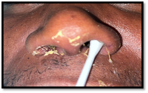 In the engraving available alongside, we demonstrate the collection, with SWAB, of a suspicious substance from the nasal cavity.