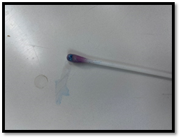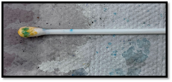 In the engraving available alongside, it is possible to identify, in the SWAB where the white substance that was collected, the appearance of a blue hue, which generates presumption for the substance cocaine.