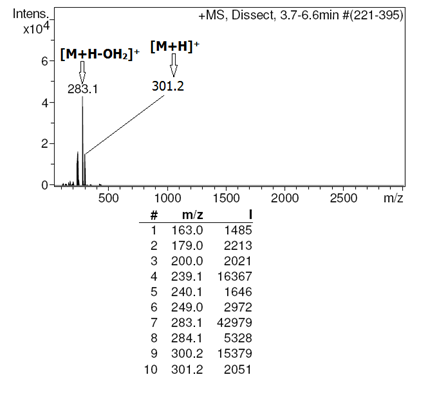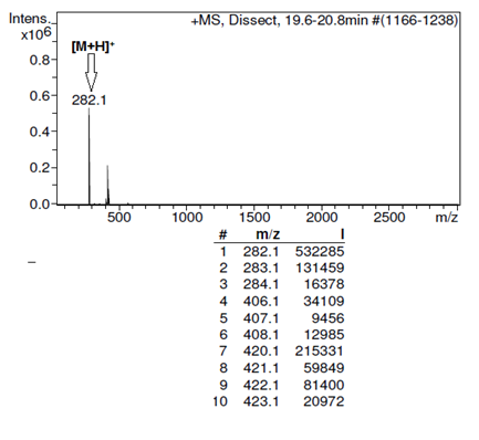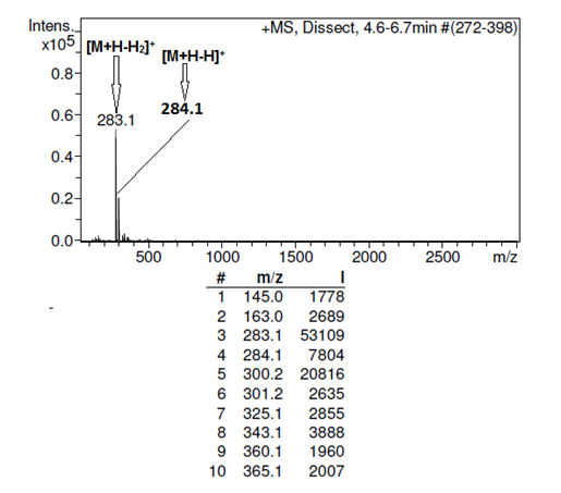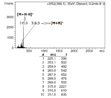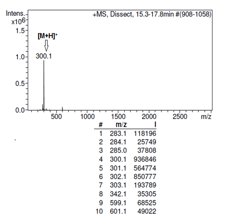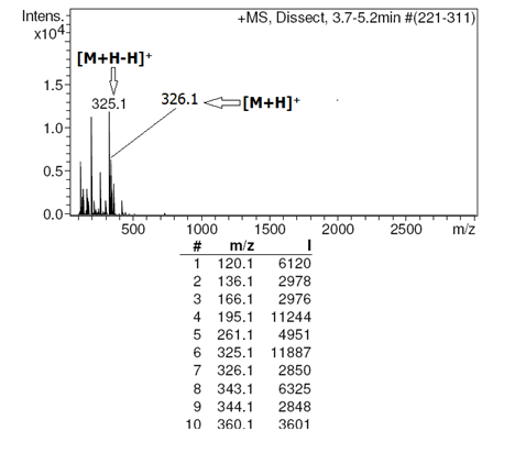 Methodology: The instrument was operated using an electrospray ionization mode (ESI) in combination with the C18 reverse phase column (120 Å, 2.1 x 150 mm Acclaim 120) 4.5 minutes resulted in the best separation and was selected. Chromatographic separation was performed with a different solvent combinations were tested to achieve the best separation. The mobile phase consisted of a mixture of methanol and 20 mM ammonium formate (50: 50, v/v) adjusted pH 8.6. A run of 25 min, including a re-equilibration time of 10 min was selected.