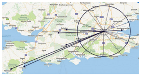 Figure 2 An image showing an example of the different ‘deal lines’ that come out of London. Image obtained via (22).