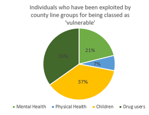 Figure 3 A pie chart which represents the type of vulnerable people country line groups exploit-data sourced from (5).