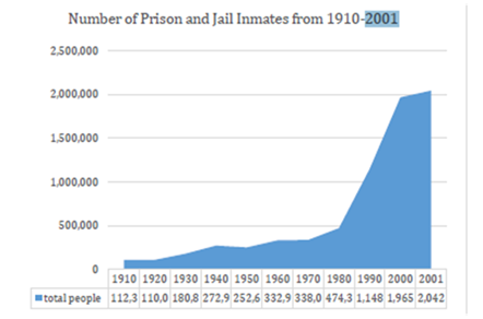 Graph 1 Data reproduced from the U.S. Bureau of Justice Statistical Data showing the volume increase incarceration statistics 2001.37