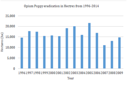 Graph 2 Opium poppy eradication efforts by the Mexican government reproduced United Nations World Drug Report 2011.43